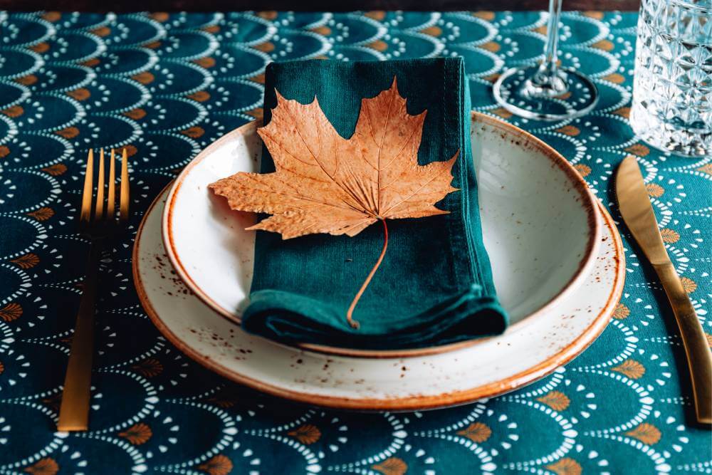 The good news is that you don’t really need to buy entirely new dinnerware sets for your Thanksgiving table décor (unless you really wish to do so). Unpretentious white dinnerware is always an elegant choice that goes well with pretty much any other color or table motif you settle for!